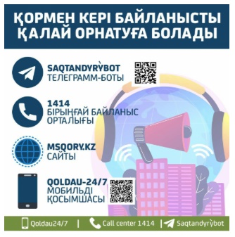 1414 Бірыңғай байланыс орталығына хабарласу. Қазақстанның барлық аумағында ұялы және қалалық телефондардан қоңырау шалу тегін.
